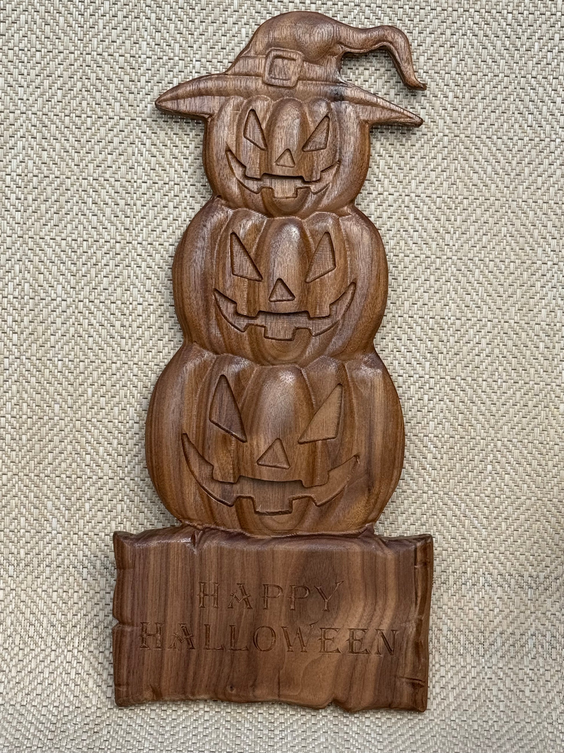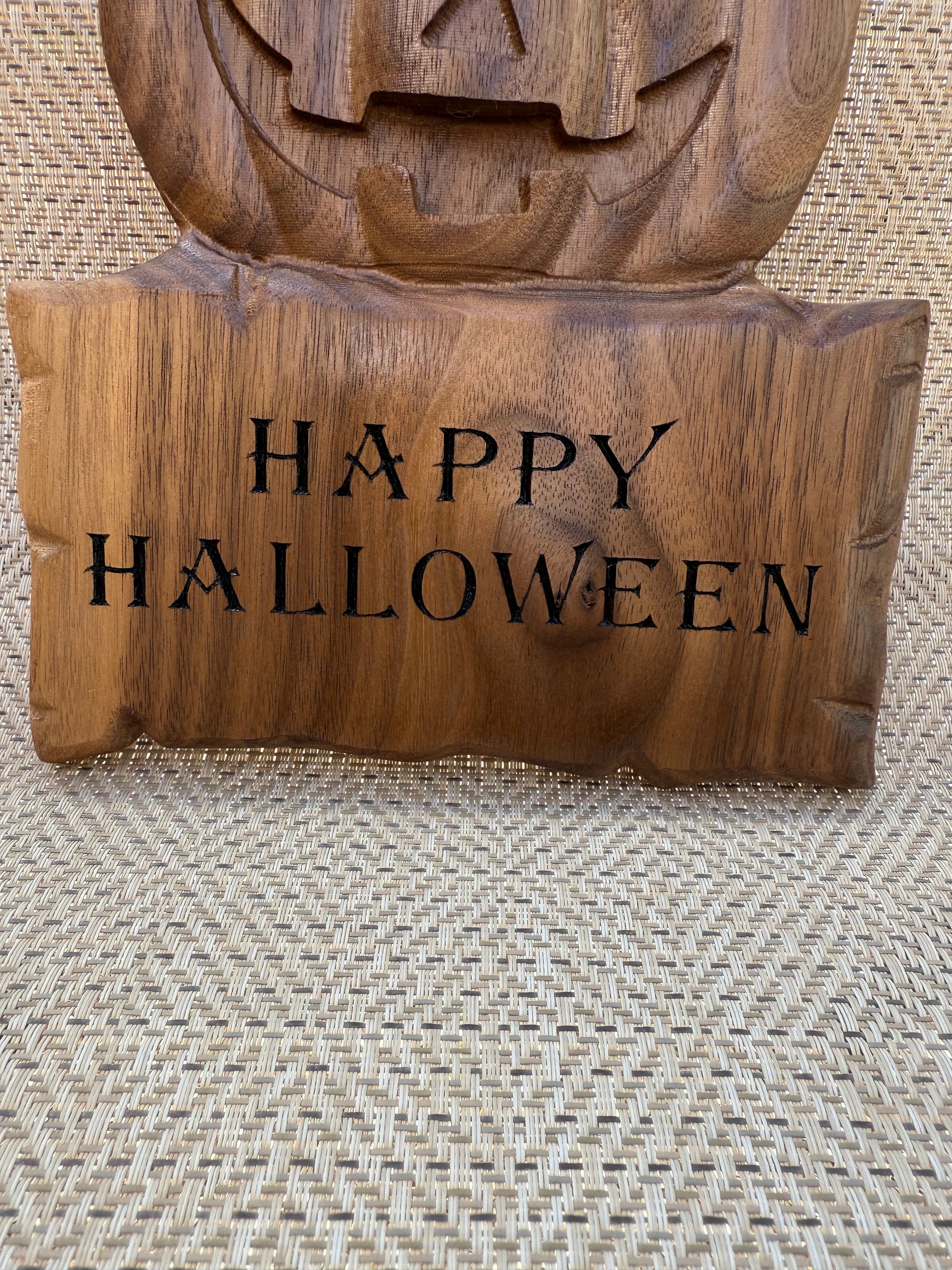 Welcome the spooky season with this beautiful walnut stacked pumpkin featuring a Happy Halloween message. Each piece is carefully crafted from premium walnut wood, making it a unique addition to your fall and Halloween decor.